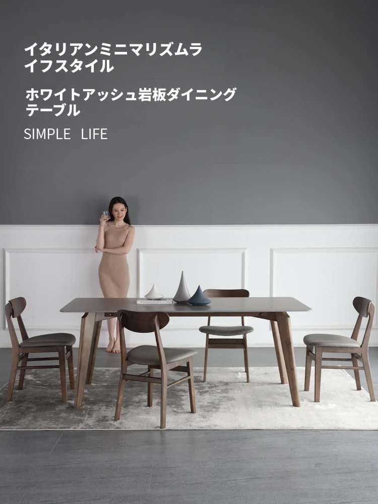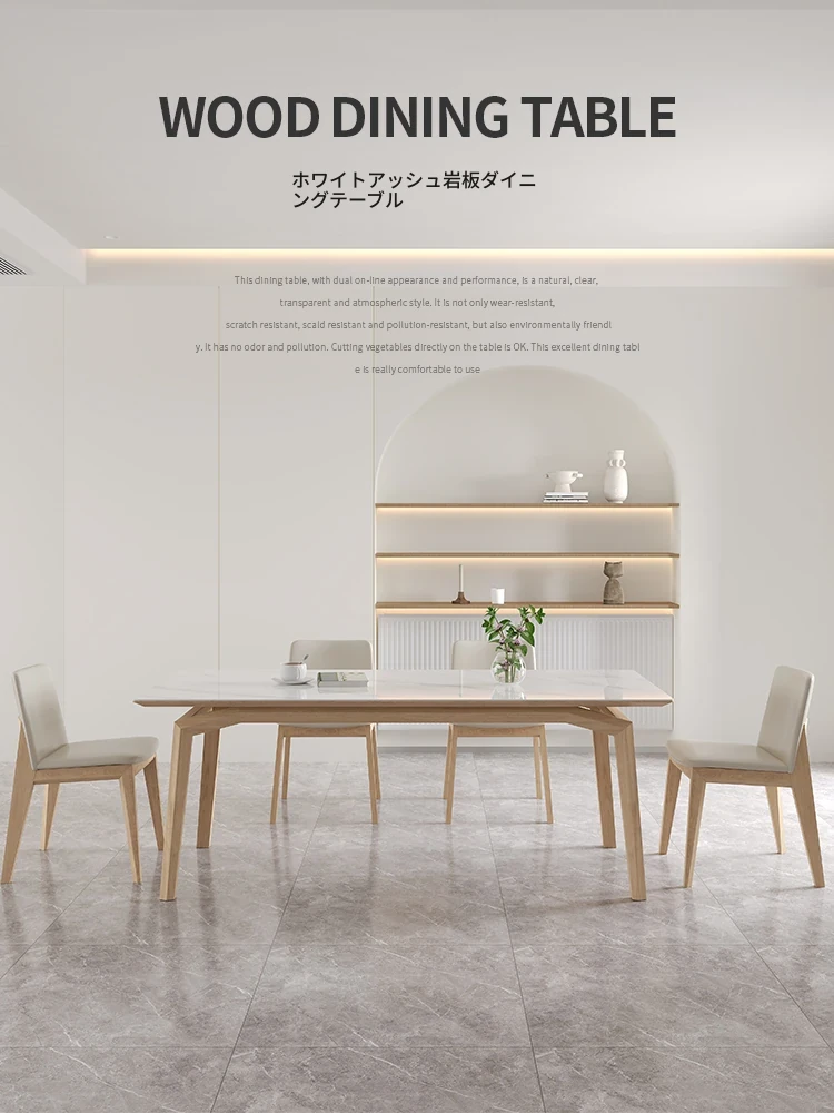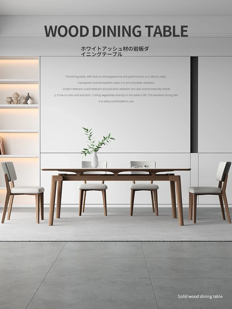 ホワイトアッシュ無垢材ダイニングテーブルセット - イタリアンミニマリズムの胡桃色現代的な長方形北欧スタイル、洗練されたデザインでおしゃれな食卓を演出します。