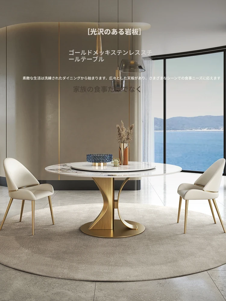 贅沢感溢れる現代的なイタリアンスタイルの円形ダイニングテーブルセット - 8〜10人用、回転式、上質な光沢のあるストーン製、家族や友人との特別なひとときを演出します!