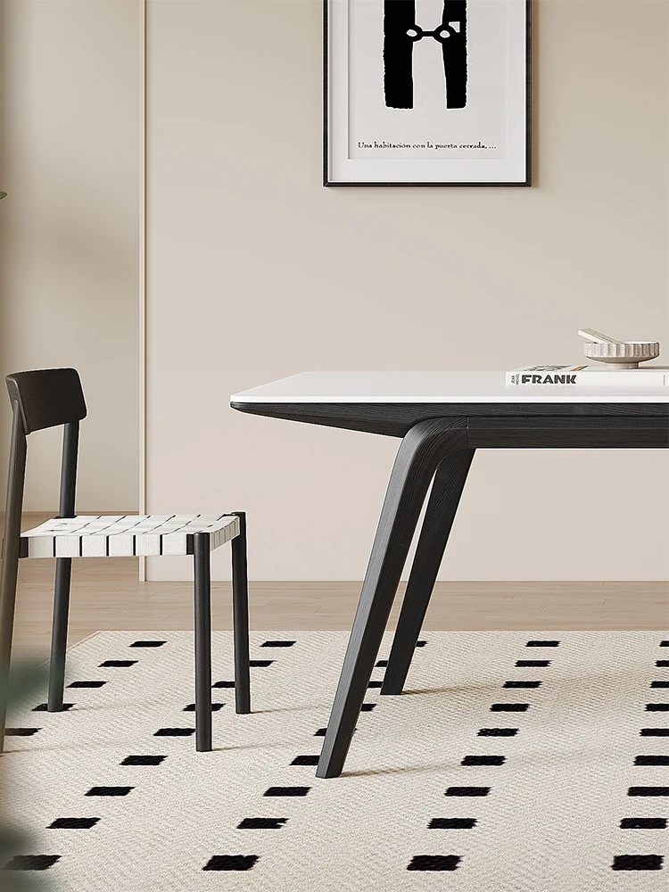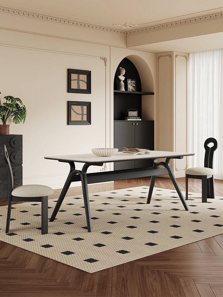 フレンチビンテージ本木製ダイニングテーブル ブラックの長方形 モダンシンプル 家庭用 イタリアンスタイル 高級純白スラブダイニングテーブル。高品質な素材で、食卓に特別なひとときを演出します。
