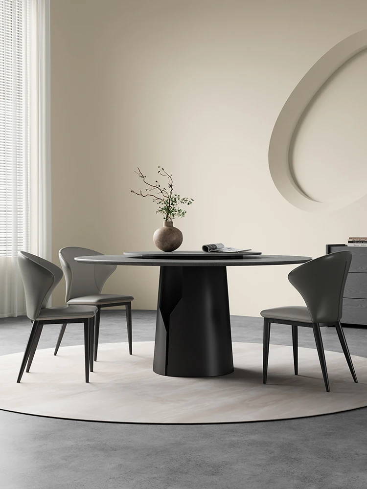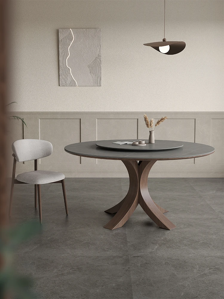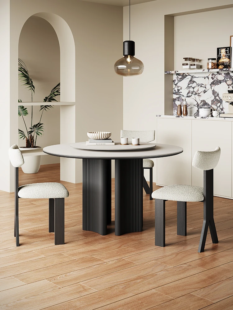 レトロな無垢材を使用したラウンドダイニングテーブル - モダンでシンプルなデザイン、家庭向けの軽豪華スタイル!小さなお部屋やアパートにもぴったりの純白の岩板テーブル。おしゃれな会話の場を演出します。