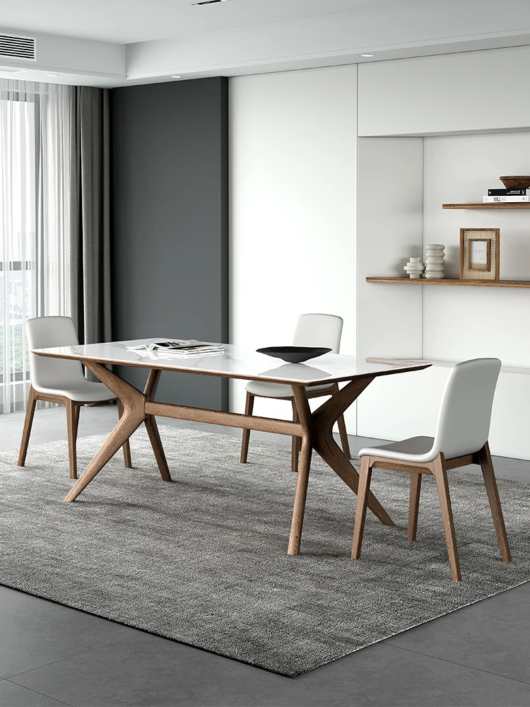 北欧スタイルの高級感漂うシンプルモダン長方形ダイニングテーブル|オーク材使用|イタリアン侘寂デザイン|家庭用にぴったりな本格木製テーブルが登場!