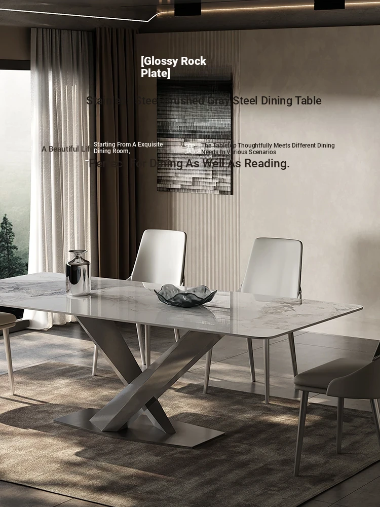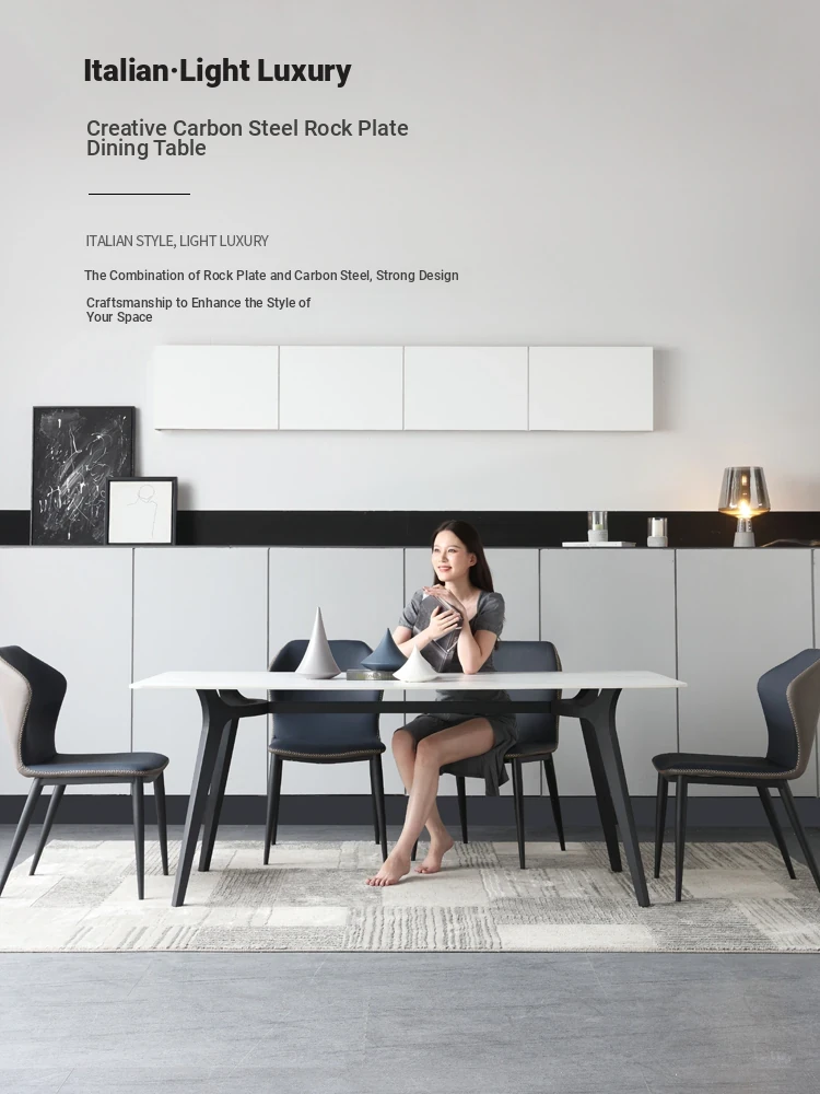 Italian Imported Porcelain Stone Dining Table - Modern Minimalist Design for Small Spaces, Nordic Marble Light Luxury Dining Table and Chair Set