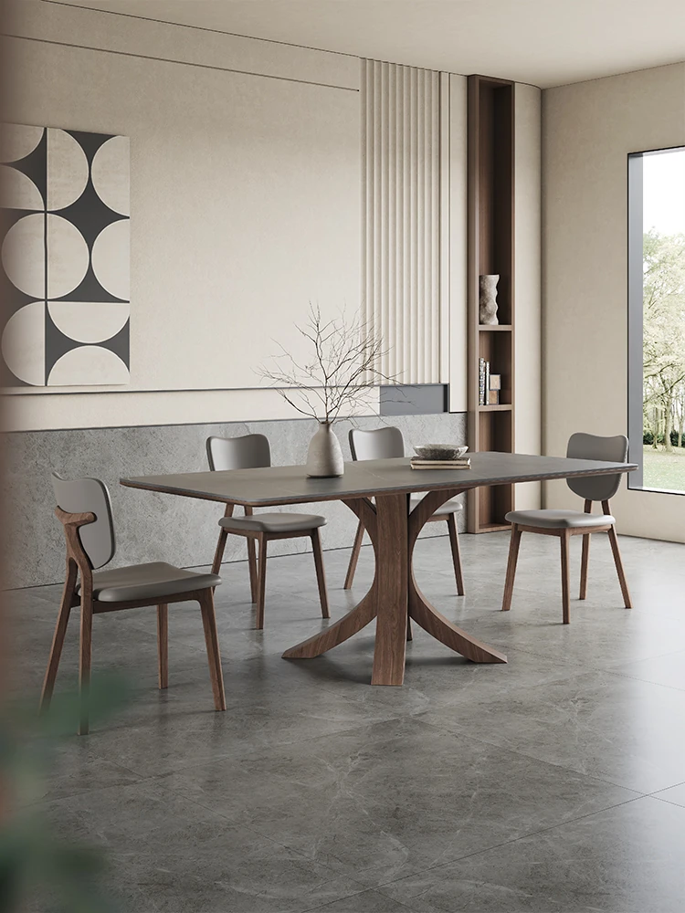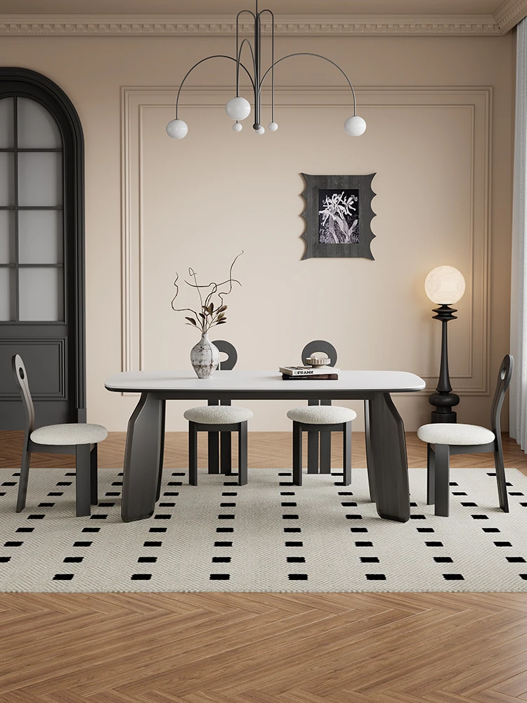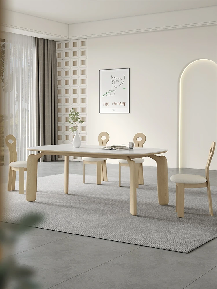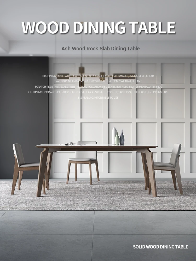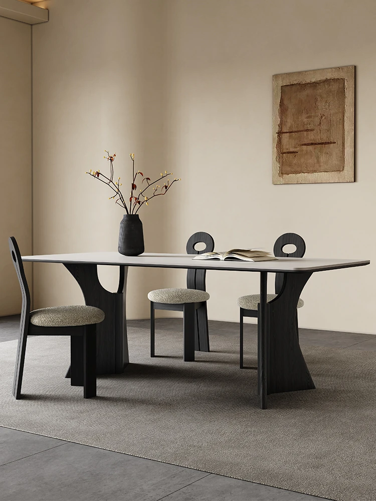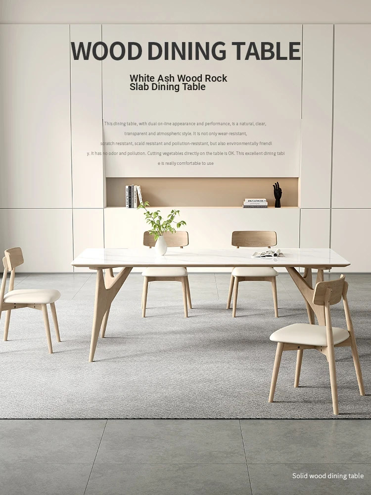 "2023 New Matte Solid Wood Rock Panel Dining Table - Modern Minimalist Style for Small Spaces, Italian Design, Perfect for Luxurious Yet Affordable Home Décor"