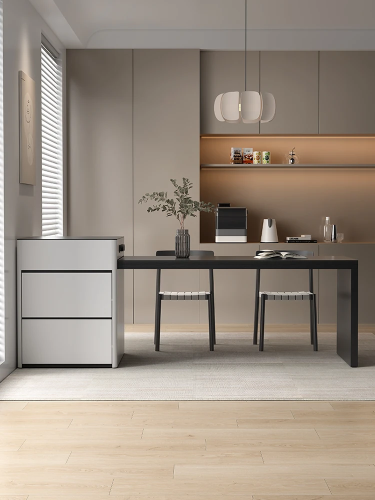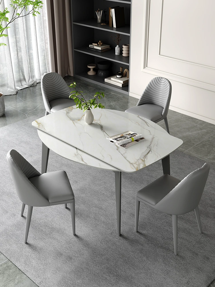 "Modern Minimalist Foldable Dual-Use Dining Table with Stone Top - Perfect for Stylish Homes & Smart Spaces"