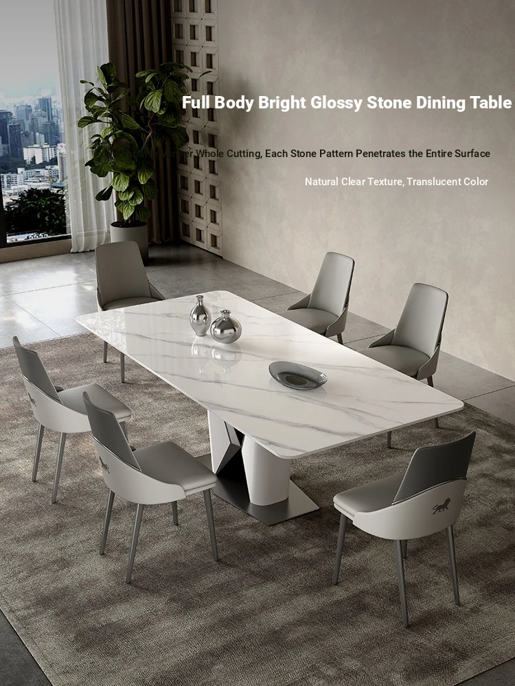 "Elegant Glossy Stone Dining Table - Luxury Designer Collection 2023, Italian Minimalist Modern Rectangle Table for Stylish Living Spaces"