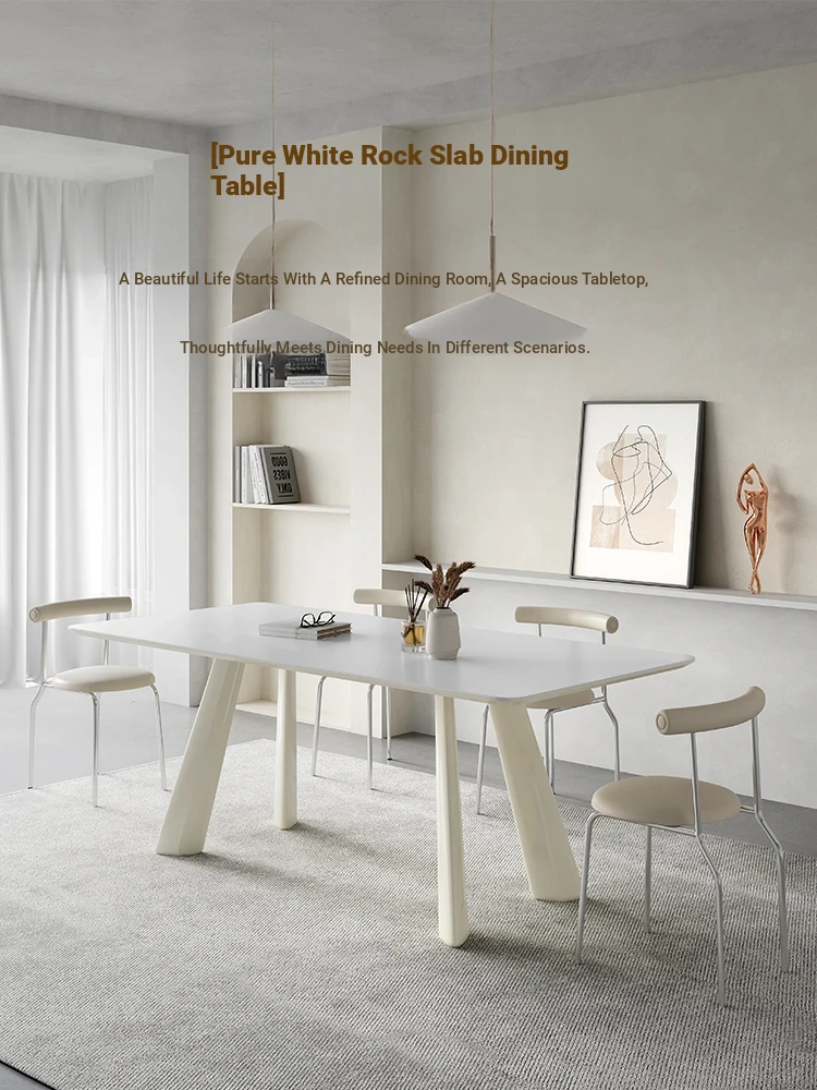 Sleek White Matte Cream-Style Rock Panel Dining Table – Modern Minimalist Design for Elegant Spaces
