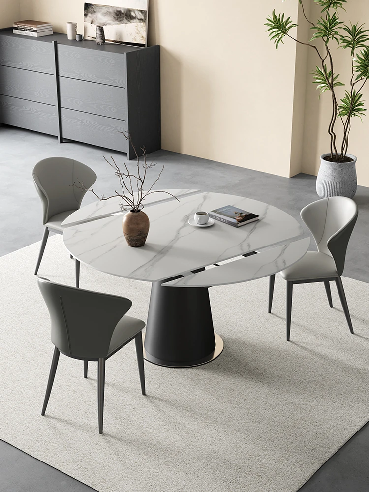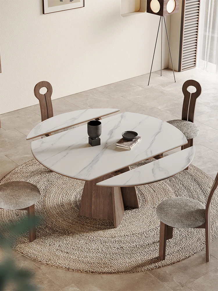 "Modern Glossy Rock Panel Expandable Dining Table - 2024 New Style, Perfect for Small Spaces, Versatile Luxury Square to Round Design for Home"