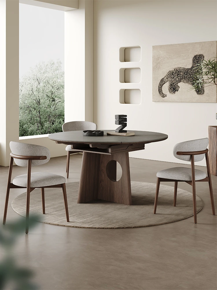Title: High-End Walnut Finish Extendable Round Dining Table - Scandinavian & Japanese Wabi-Sabi Style, Matte Surface, Ideal for Home Use & Elegant Dining Experiences