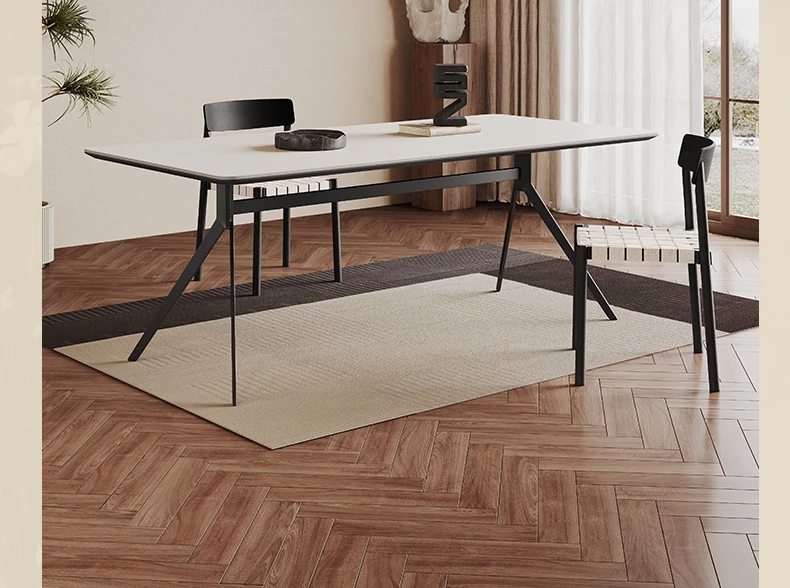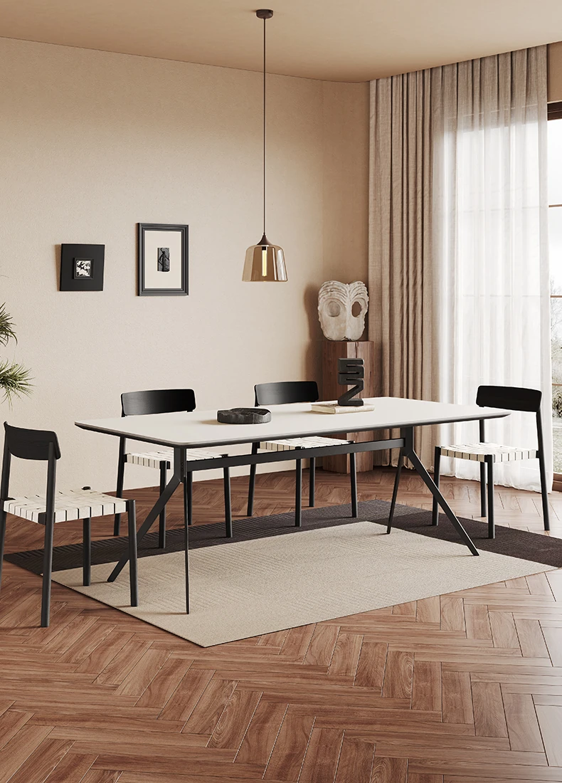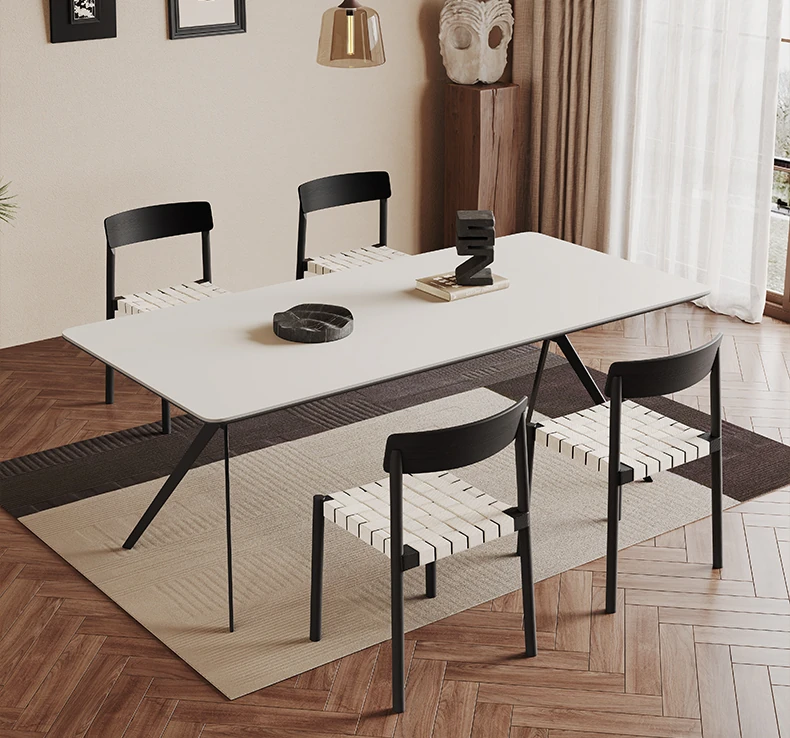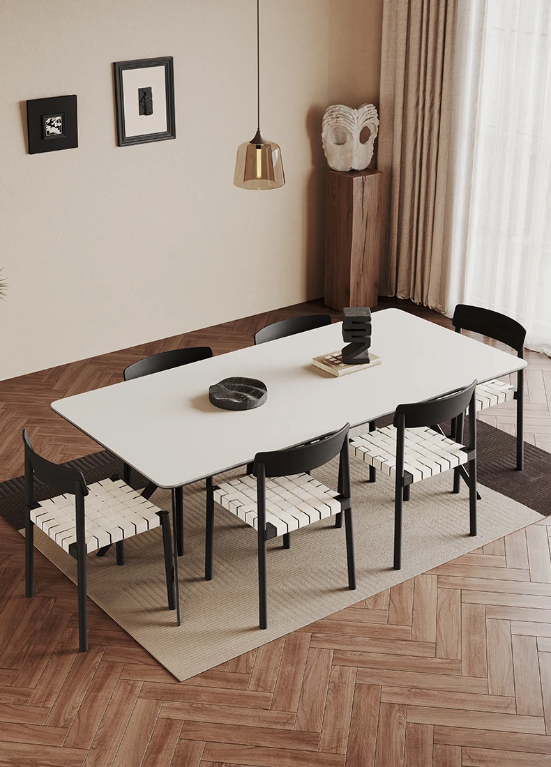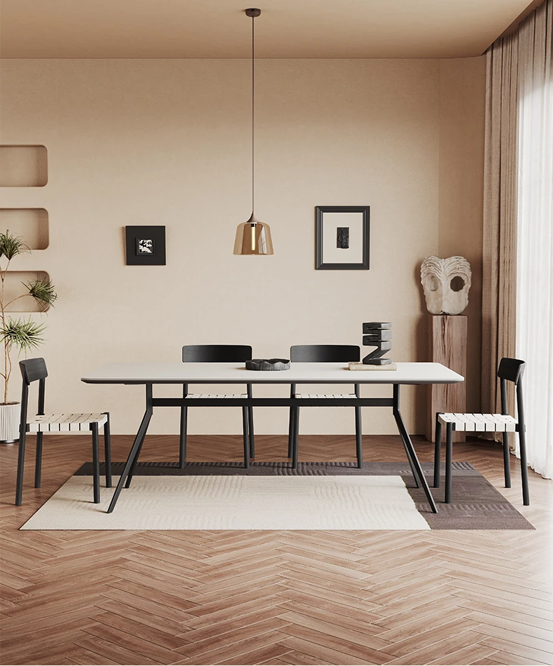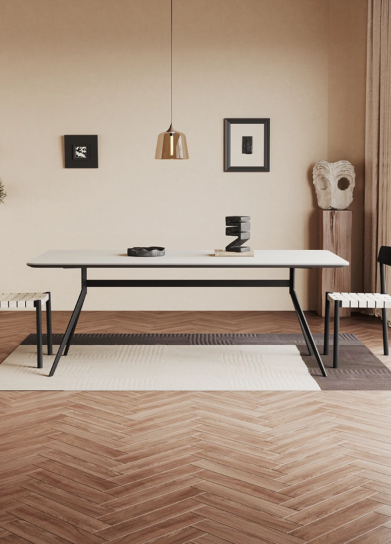 2023 New Italian Luxury Rectangular Dining Table - High-End Metal Design in Pure White Matte Finish, Perfect for Modern Elegance and Minimalist Interiors.