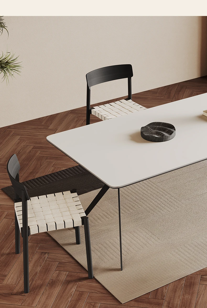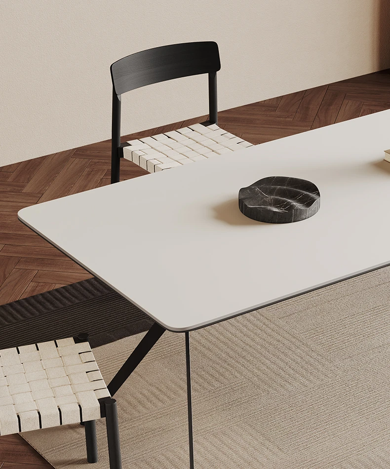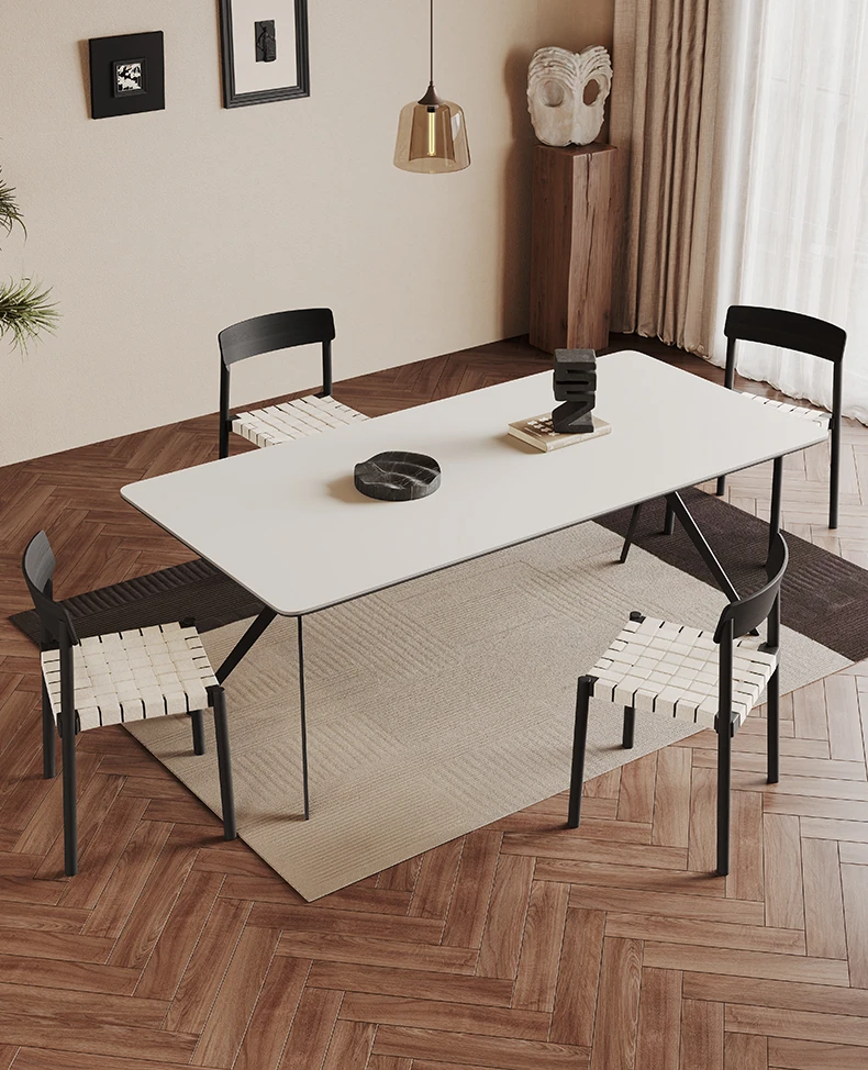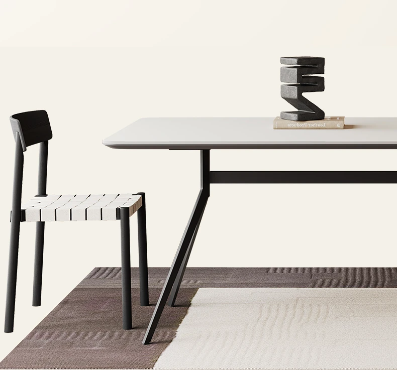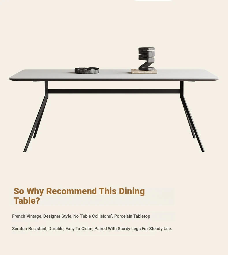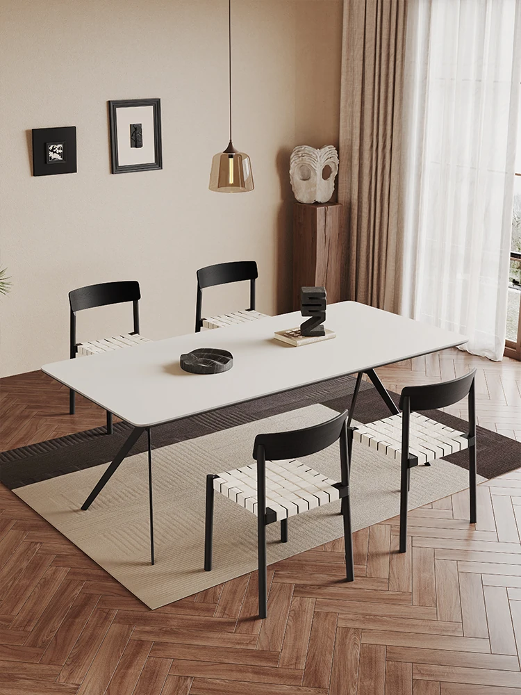 2023 New Italian Luxury Rectangular Dining Table - High-End Metal Design in Pure White Matte Finish, Perfect for Modern Elegance and Minimalist Interiors.