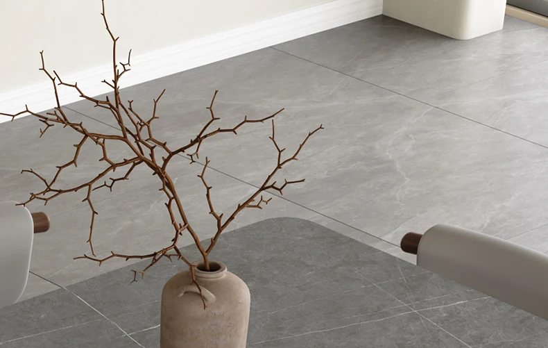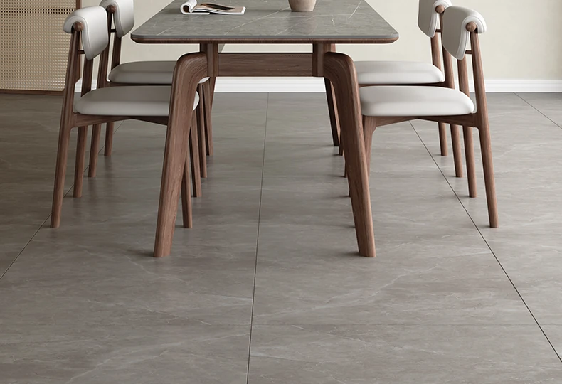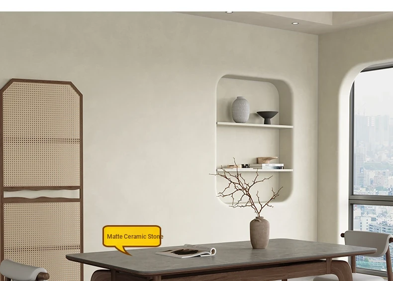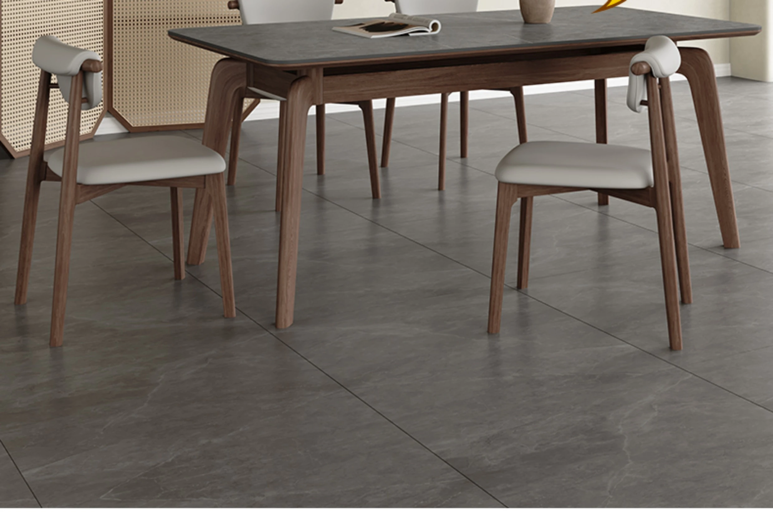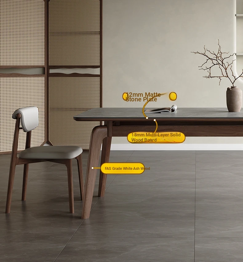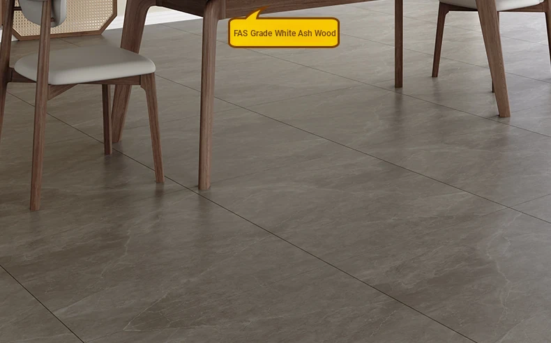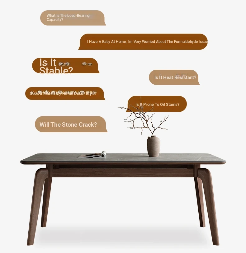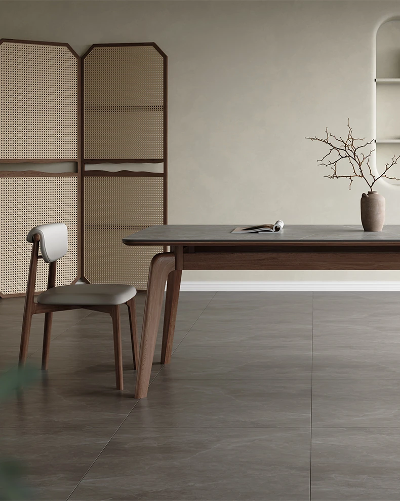 Elegant Solid Wood Dining Table - Modern Rectangular Design in Premium Walnut Color with Floating Nordic Grey Marble Top for Luxurious Home Dining Experience
