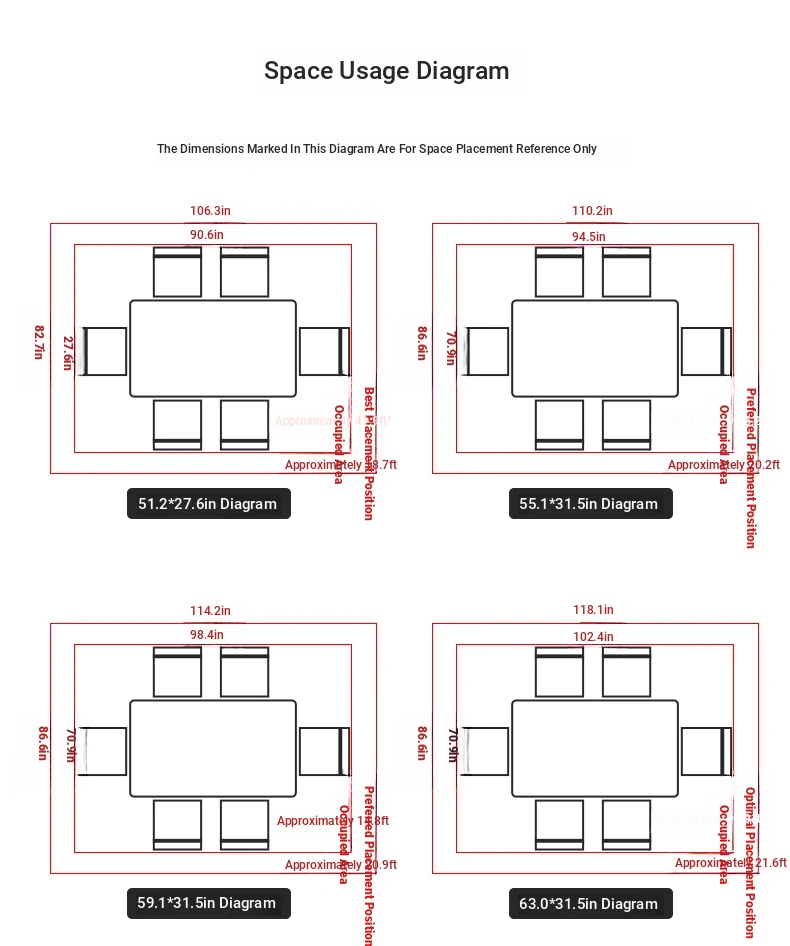 55.12in*31.50in +4 chairs (Classy designer Matching)