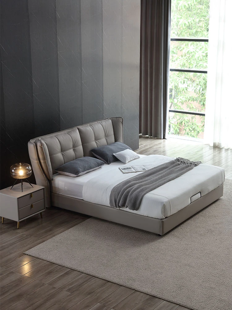 Classy flannel bed + soft Plaid latex mattress + bedside table * 2