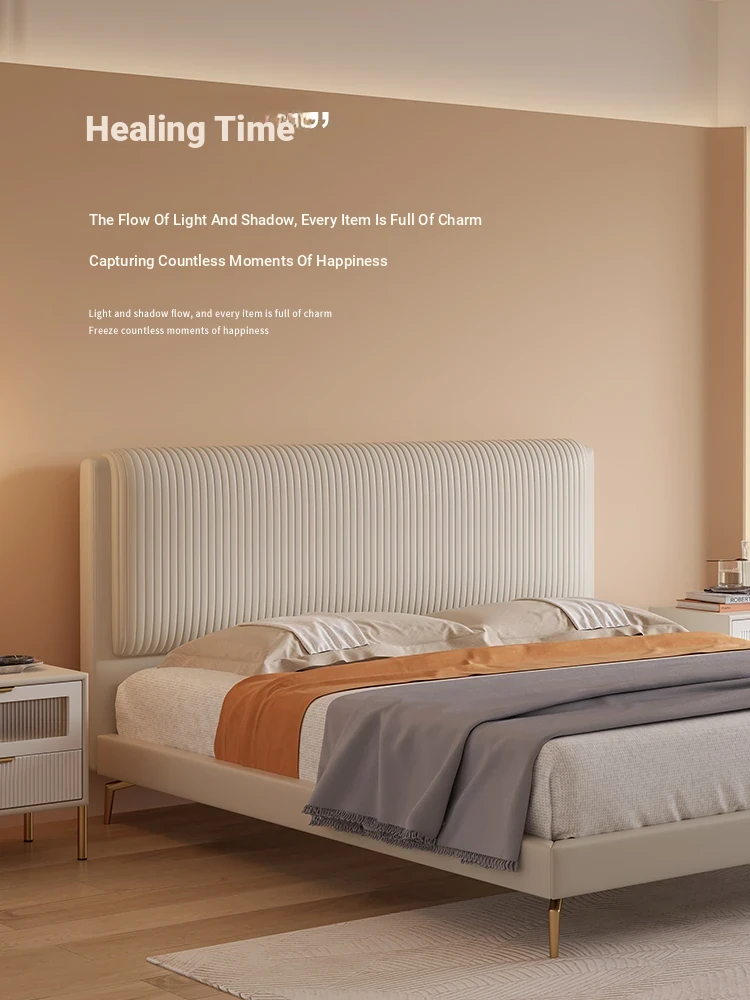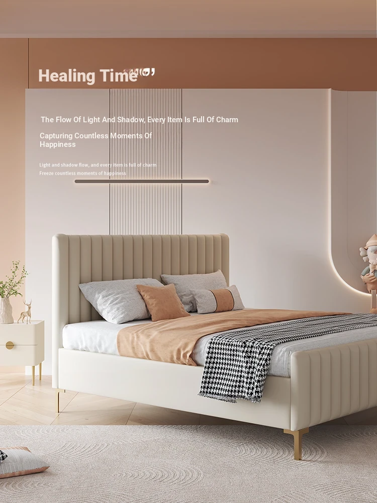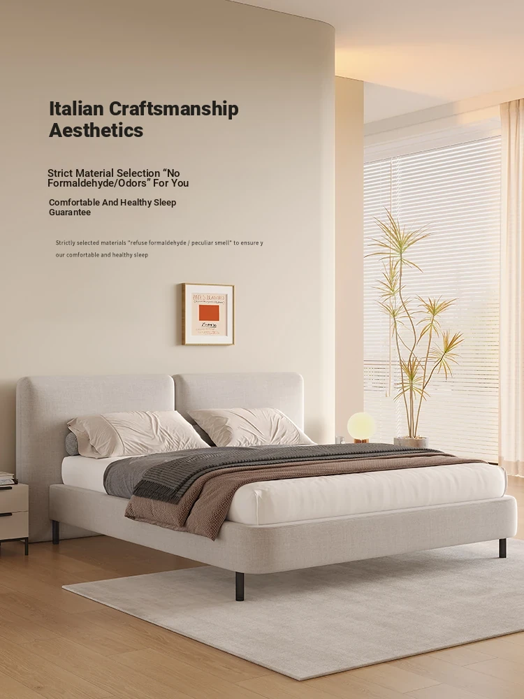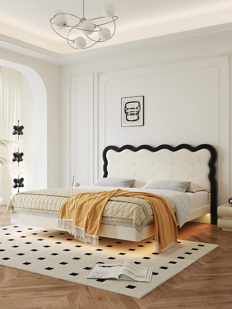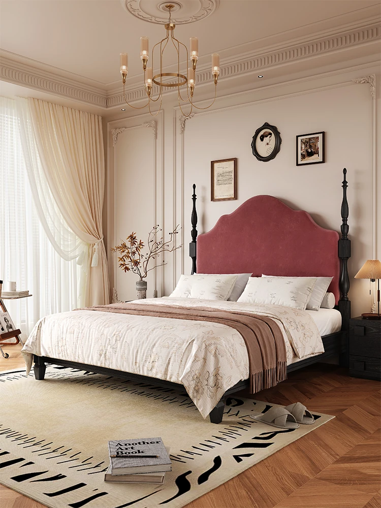 "Modern Minimalist Cream Velvet Upholstered Bed - Stylish Pink Fabric Queen Size 1.8m Double Bed for Small Bedrooms - Perfect for Your Cozy Master Suite"