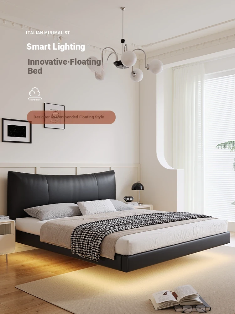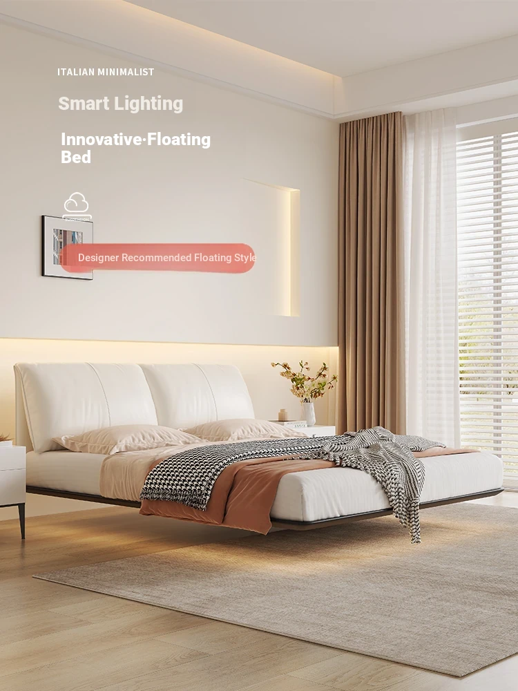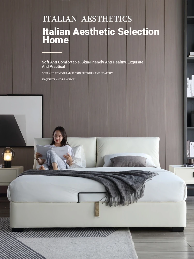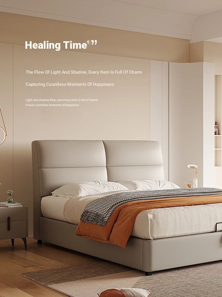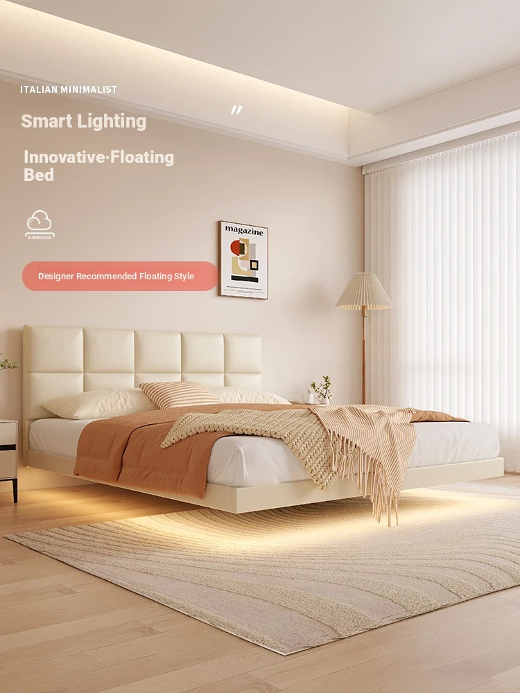 "Modern Minimalist Cream Velvet Upholstered Bed - Stylish Pink Fabric Queen Size 1.8m Double Bed for Small Bedrooms - Perfect for Your Cozy Master Suite"