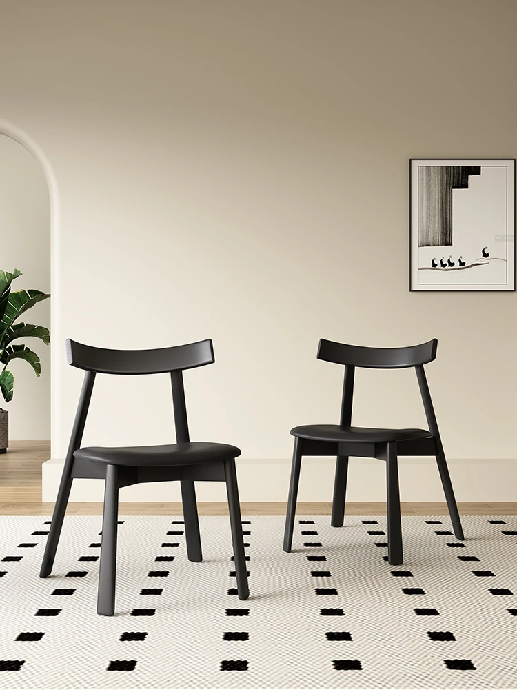 Chic French Vintage Solid Wood Dining Chair for Small Spaces - Modern Minimalist Design with Elegant Retro Leather Finish for Home Dining Room