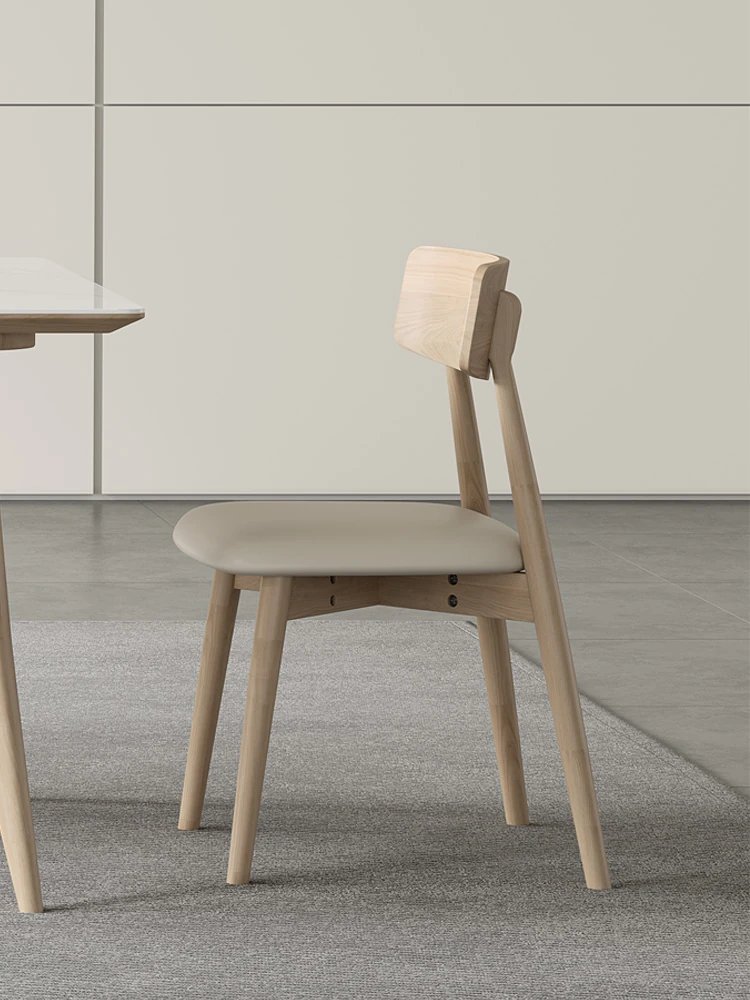 Modern Solid Wood Dining Chair with Soft Upholstered Backrest - Minimalist Nordic Design for Home and Casual Dining Spaces. Perfect for Restaurants and Relaxation.
