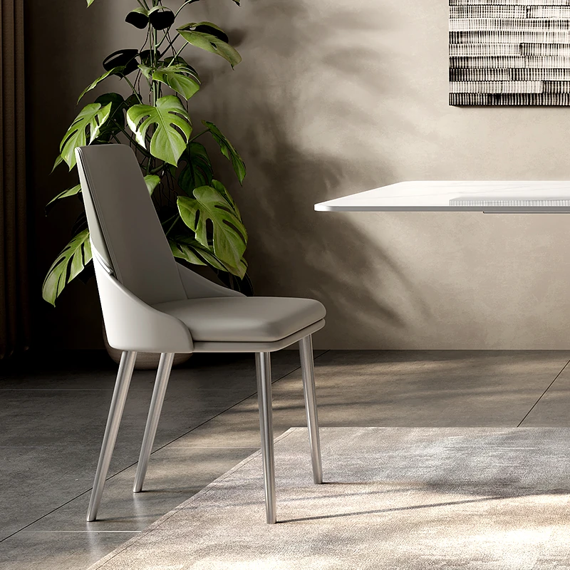 Sleek Italian Minimalist Dining Chair - Luxurious Home & Hotel Restaurant Seating, Perfect for Desks and Makeup Stations, Premium Designer Quality in Elegant Leather Finish.