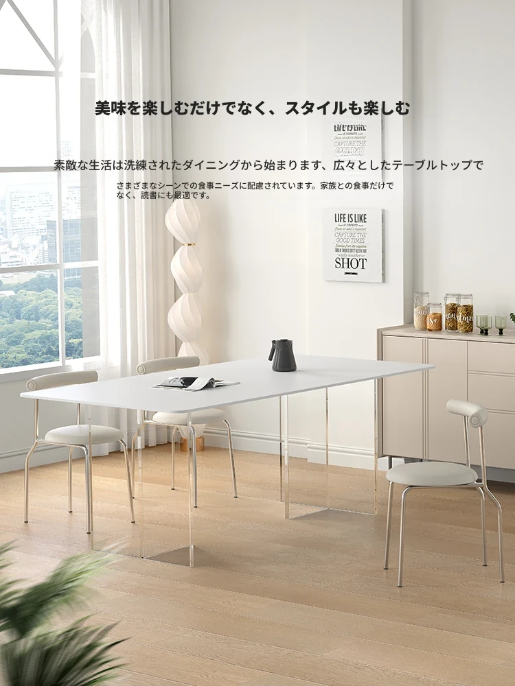 浮遊する純白のシンプルモダンアクリルダイニングテーブル - スタイリッシュなデザインで、お部屋を華やかに演出します!おしゃれな食事空間を実現する理想の一品です。