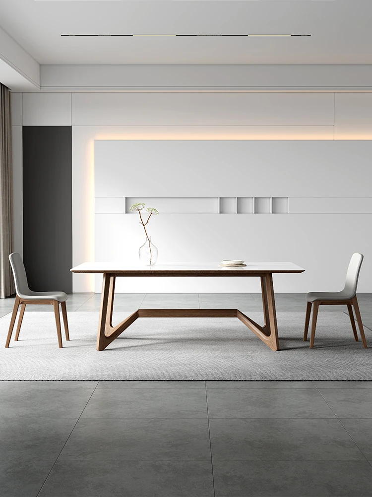北欧スタイルの高級感漂うシンプルモダン長方形ダイニングテーブル|オーク材使用|イタリアン侘寂デザイン|家庭用にぴったりな本格木製テーブルが登場!