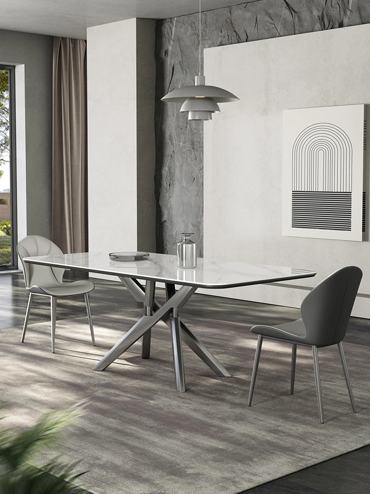 モダンでシンプルなカーボン鋼製2WAY岩板テーブル - 幅広いスタイルにフィットし、お洒落なダイニングを演出します!