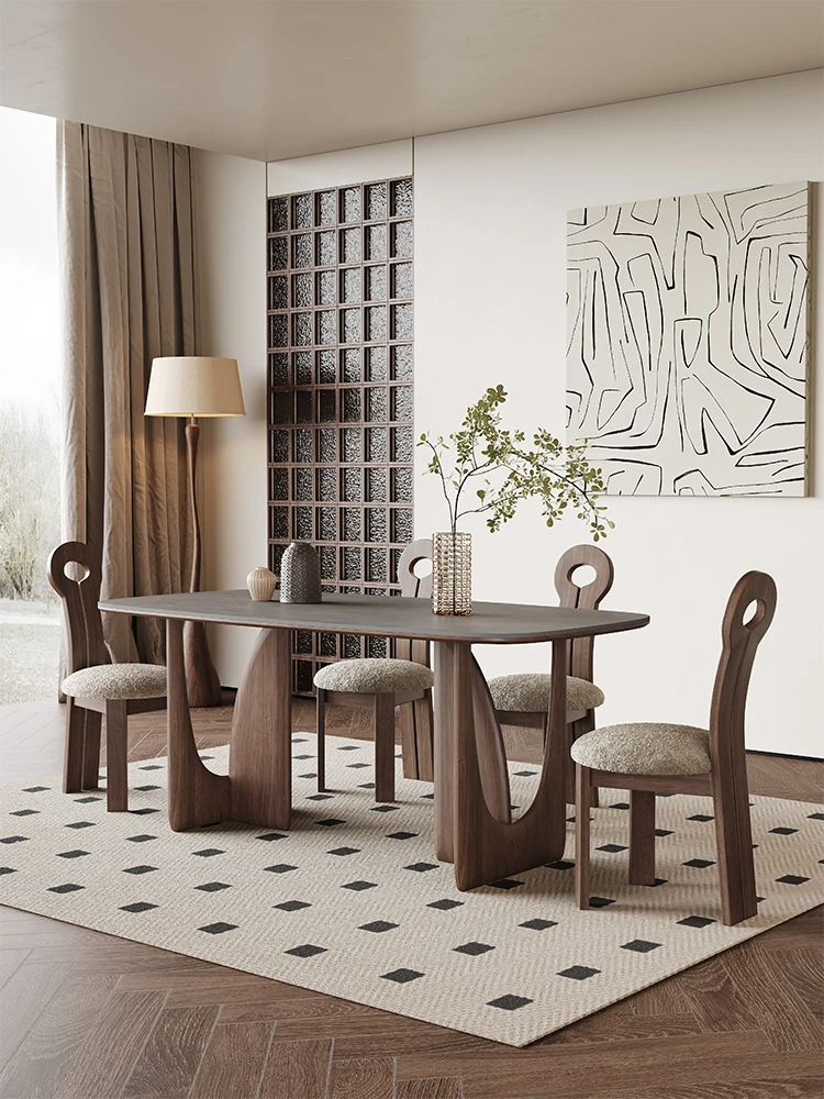 イタリアンミニマリストデザインのロック調テーブル|2024年新作・全体を支える軽やかなラグジュアリー感|モダンな長方形の天然木製ダイニングテーブル|中古風スタイルでおしゃれな食卓を演出!