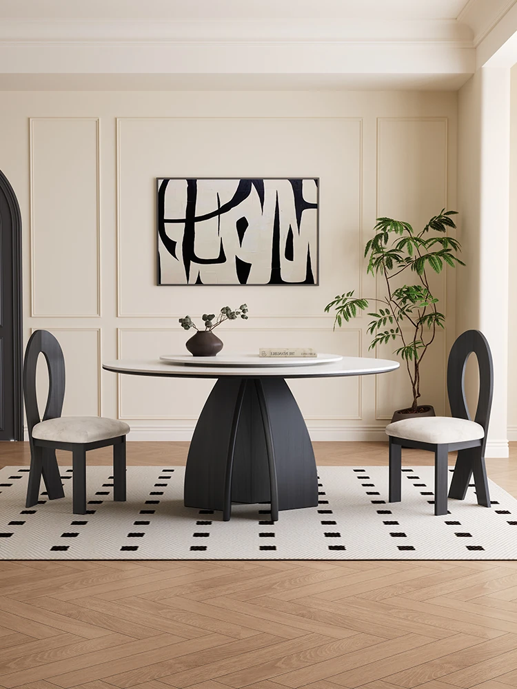 新作2024年版!高級感あふれる純白マット仕上げの岩板円卓 - レトロ風デザインで、小さなスペースにもぴったりな実木使用の軽Luxuryダイニングテーブル。あなたの食卓を特別な空間に演出します!