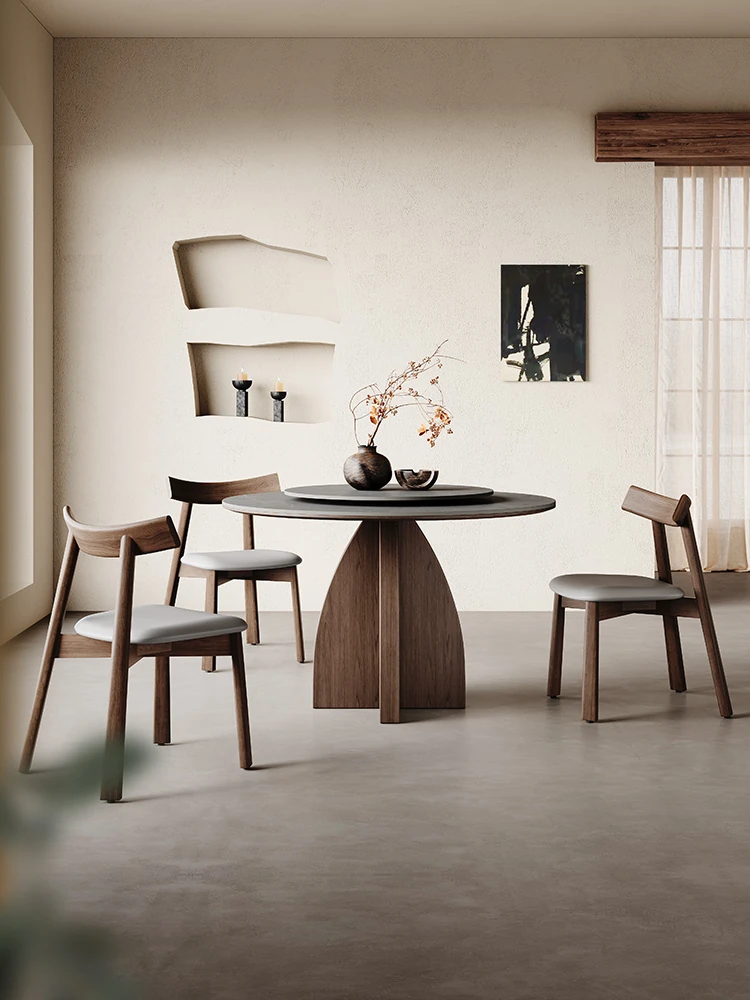 レトロスタイルのホワイトアッシュ無垢材使用、方形&円形のスタイリッシュな岩板ダイニングテーブル - 自然のぬくもりと洗練されたデザインで、食卓を引き立てます!