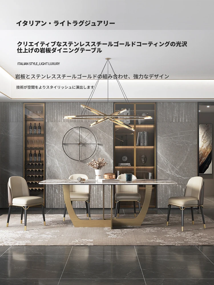 イタリアンミニマリズム光沢石板ダイニングテーブル|モダン・シンプル・ラグジュアリー|高品質・家用・小型住居に最適な長方形食卓|おしゃれで洗練された食事空間を演出!